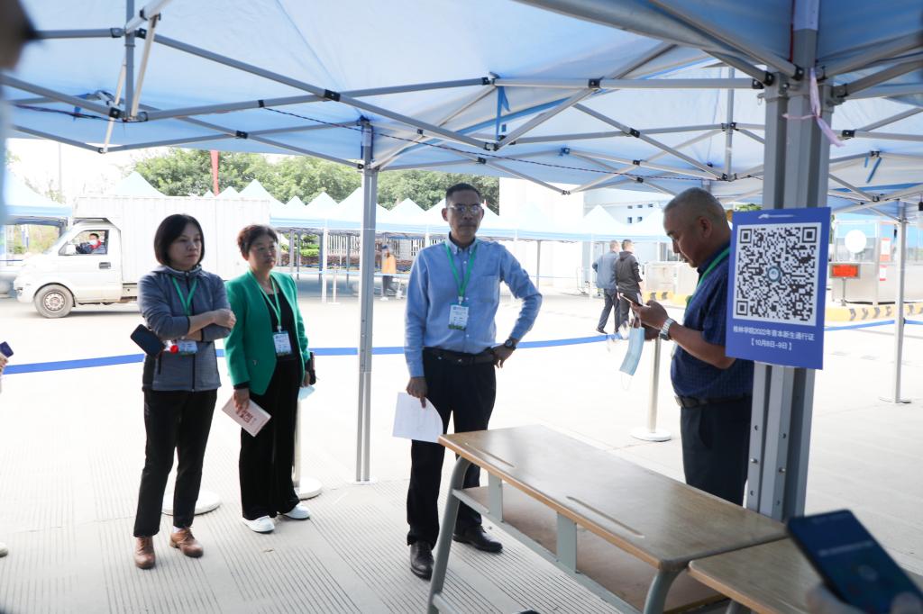 10月7日下午,学校对2022级普本新生迎新准备工作进行再统筹再检查。学校副董事长郑善华、学校2022级新生入学工作领导小组全体成员、校园二期建设项目部相关人员参加检查。