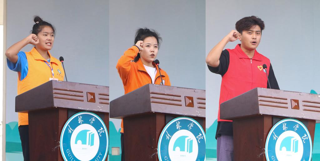 体育与健康学院2020级体育教育专业学生蒋文倩、城市设计学院2020级视觉传达设计专业学生钟林娜、传媒与新闻学院2020级播音与主持艺术专业学院耿华宇,分别代表裁判员、运动员和志愿者进行宣誓。