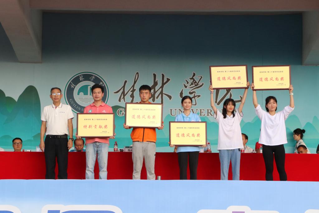 接着,体育与健康学院副院长、校体委委员、总裁判长涂海宁宣布本届田径运动会各项比赛获奖名单;学生事务部部长、校体委委员、道德风尚组组长蒋远宏宣读道德风尚奖获奖名单。其中,获得田径运动会学生甲组团体总分前三的单位分别是管理工程学院、理工学院和教育学院;获得田径运动会学生乙组团体总分前两名的单位分别是体院与健康学院2022级、体育与健康学院2021级;荣获本届运动会道德风尚奖的单位是城市设计学院、人文学院、金融与法律学院、体育与健康学院。校领导分别为获奖单位代表颁奖。