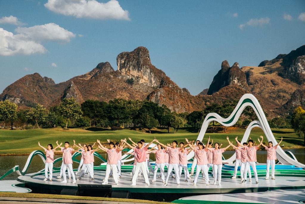 首届桂林艺术节以“山水有约,桂林有戏”为主题,在选曲、舞蹈编排等过程中均紧紧围绕这一主题进行。发布会当天,我校“小象队”成员整装待发,怀着激动、期待的心情尽情地向各位来宾展示我们的友好、好客之情,将所有的情感融入到歌声、舞姿中,给到场的嘉宾带来了一场青春激昂的视觉盛宴,将推广曲《山水一幕》完美演绎,让嘉宾们感受到属于桂林大学生们的青春活力和积极向上的精神风貌。