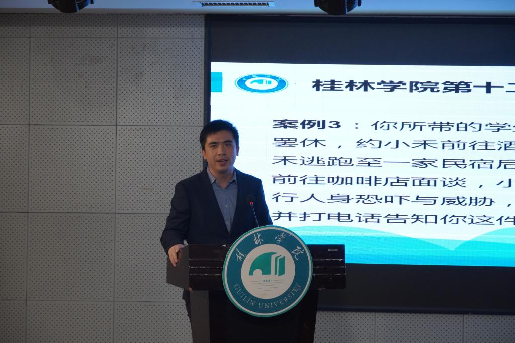 11月17日在至善讲堂举行谈心谈话环节。学校特邀请桂林理工大学学工部(处)副部(处)长、硕士生导师孙巍副教授,桂林理工大学学工部(处)学生管理科干部魏俊儒,桂林理工大学辅导员、第十一届广西高校辅导员素质能力大赛一等奖获得者夏勇超,广西师范大学外国语学院辅导员、第十一届广西高校辅导员素质能力大赛一等奖获得者唐玉福,广西师范大学教育学部辅导员、第十一届广西高校辅导员素质能力大赛一等奖获得者彭飞燕作为评委嘉宾。比赛中,面对“学生”存在的重重问题,参赛选手们沉着应对,深刻剖析问题的本质,站在“引导、服务”和“法、理、情”等多角度指出解决问题的思路,提出具体的解决方案,并围绕问题阐述自我启示。
