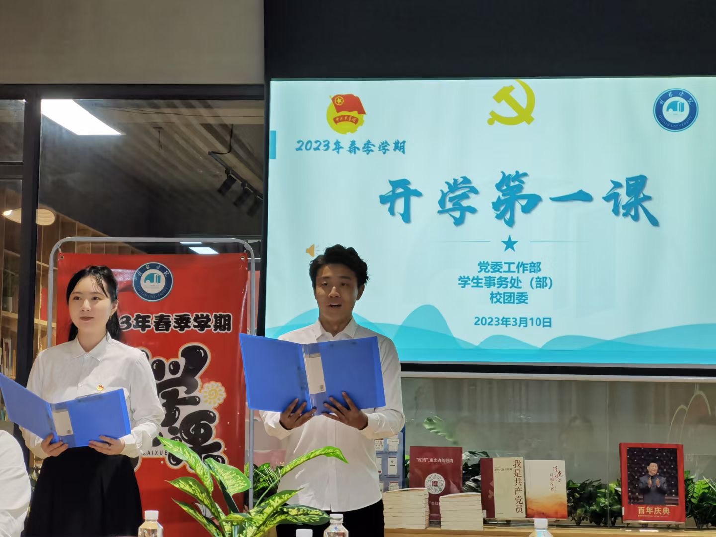 3月10日下午,我校2023年春季学期“开学第一课”在图书馆A馆主题阅读体验区开讲。学校党委书记、督导专员唐文红以《做中国式现代化征程上的有为桂院青年》为题讲授了一堂催人奋进的“开学第一课”。
