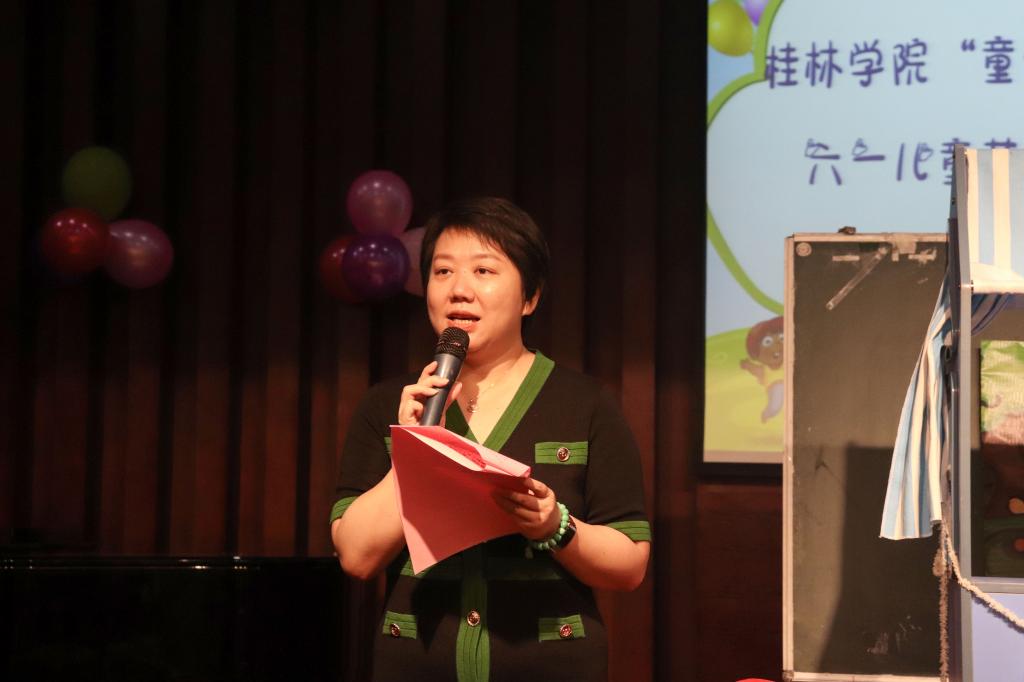副校长、校工会主席杨庆庆在活动致辞中向小朋友们表示节日的祝贺!向一直关心、支持学校教育事业的教职员工及其家属致以诚挚的问候和衷心的感谢!希望小朋友们胸怀远大理想,健康茁壮成长。希望教职工们用心创事业、用爱顾家庭。
