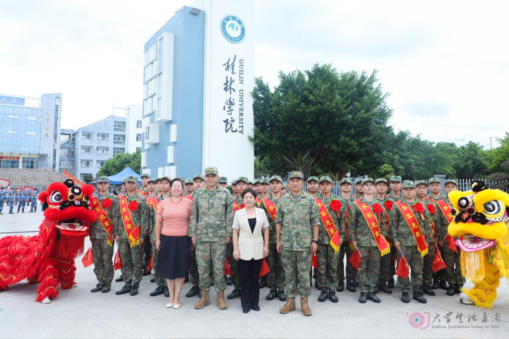 莘莘学子携笔从戎,参军报国建功立业。9月15日上午,我校组织师生前往桂林旅游学院参加桂林市雁山区第23个全民国防教育日暨新兵入伍欢送大会。雁山区人民政府区长潘军华,雁山区人武部部长冯超,雁山区人武部政委王晓忠出席会议。校领导何玲受邀前往参加欢送仪式。