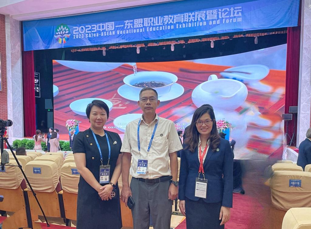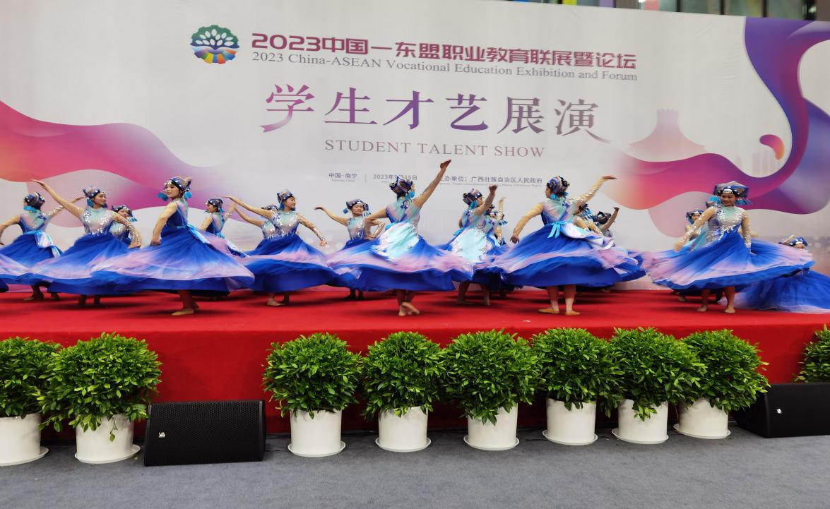 金秋九月,朱槿花开。9月15—16日,以“共建产教集聚融合平台 共享职业教育发展成果”为主题的2023中国-东盟职业教育联展暨论坛在南宁隆重举行。应组委会之邀,我校校长杨树喆率队参加本次联展暨论坛。副校长杨庆庆、发展与质量评估处(对外合作与交流中心)负责人陪同参加联展暨论坛。我校组织教育学院学前教育、舞蹈学专业师生参加联展活动。