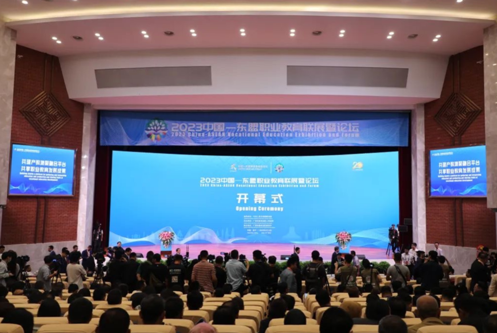 联展暨论坛开幕式、2023中国-东盟职业教育合作发展大会相继在广西建设职业技术学院大礼堂举行。中国广西壮族自治区主席蓝天立、教育部副部长陈杰出席开幕式并致辞,自治区副主席李常官主持开幕式。老挝教育体育部副部长康塔莉·司里彭潘、缅甸科技部副部长昂泽亚、柬埔寨教育青年体育部国务秘书欧姆·罗姆尼等领导和嘉宾出席开幕式和发展大会。东盟各国代表团成员,中国教育部有关司局、各有关省(区、市)教育厅、香港特别行政区职业训练局、澳门特别行政区教育及青年发展局领导,各有关省(区、市)职业教育知名专家,各有关省(区、市)应用型本科高校、高职院校、中职学校负责人,各有关省(区、市)相关企业负责人等参加开幕式和发展大会。发展大会主旨演讲先后由广西壮族自治区教育厅厅长刘友谊、广西国际商务职业技术学院院长王国红主持。10位中外专家和嘉宾发表了主旨演讲。