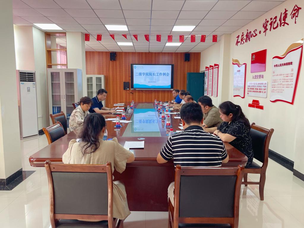 会上,9位二级学院院长(主持工作副院长)依次就近期教学、校园安全稳定、教师招聘、学生实习检查等方面的工作进行梳理及遇到的问题和困难情况汇报。最后,蒋毅结合近期学校制定二级学院行政领导班子成员岗位职责(试行)草案提出了工作要求,确保各二级学院做好草案的梳理和修订工作。