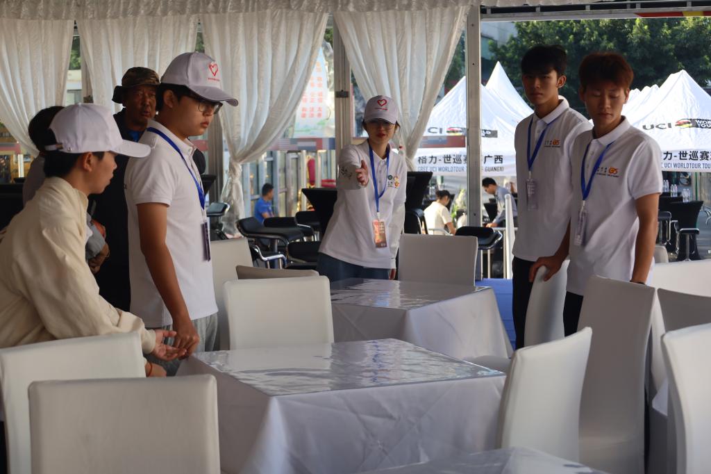 活动期间,志愿者们用微笑与热情感染着来自世界各地的运动员,用专业与坚守圆满完成组委会交办的各项工作。他们每天按时集合、乘车出发到达指定工作地点,积极配合组委会工作人员布置的各项工作,志愿者们以神采奕奕的青春激情,井井有条的团队协作能力以及吃苦耐劳的志愿服务精神展现了桂院学子的独特魅力,获得了组委会及参赛选手的一致好评。体育与健康学院2021级体育教育专业谭庭毅同学感慨道,“这次志愿活动让我感触很深,本次活动我主要负责前期会务,在过程中遇到了不同国家的国际友人和从其他地区赶来观赛的热心观众,让我第一次深刻地感受到了不同国家的文化特色和大家对自行车赛事的热情。作为一名体育教育专业的学生通过参加这次志愿服务活动,不仅增强了我的语言表达能力,更是为我成为一名体育教师的梦想增添了一份新力量。”