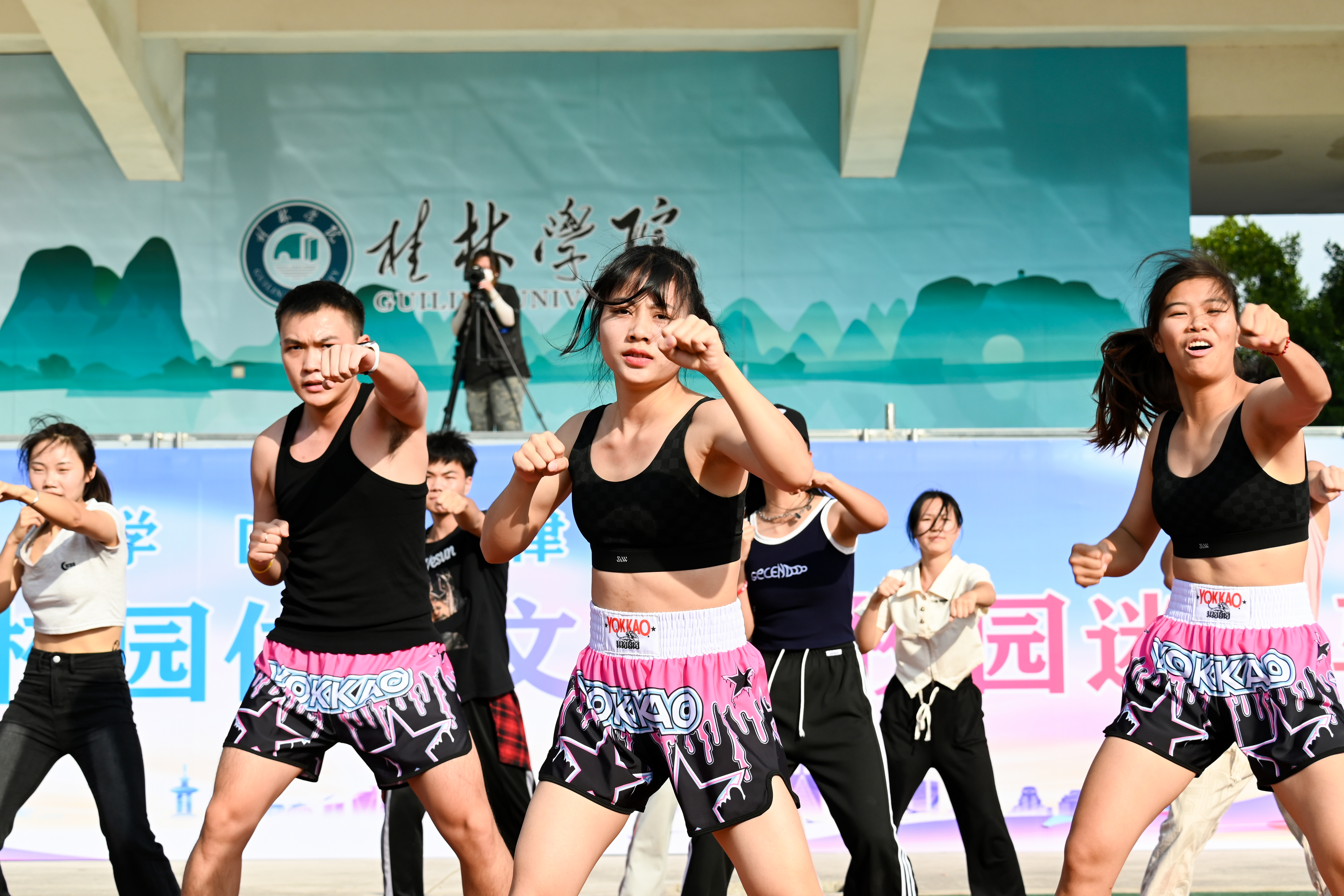 启动仪式上,由舞狮队表演的“群狮献瑞”,体育舞蹈队表演的啦啦操舞蹈串烧,展现了桂院学子昂扬向上的进取精神和激情洋溢的精神风貌。