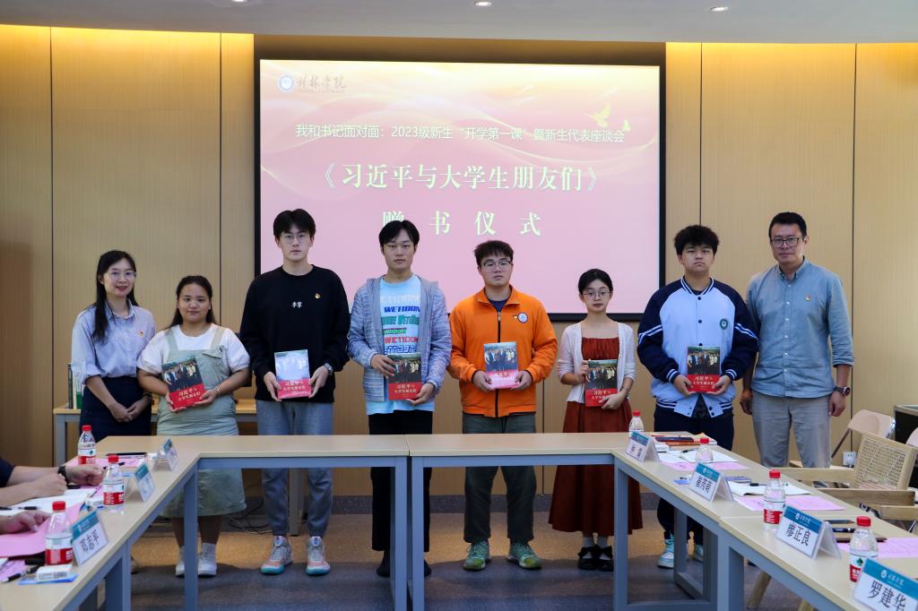 会议最后,校党委委员廖莎、杨杰夫向学生代表赠送了《习近平与大学生朋友们》一书。