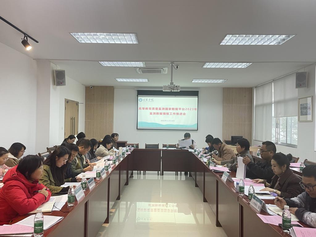 11月14日下午,我校在图书馆C馆三楼报告厅召开高等教育质量监测国家数据平台2023年监测数据填报工作推进会。会议由副校长杨庆庆主持,发展与质量评估处、教务与产教融合处、人力资源处(部)负责人、各二级学院副院长及相关数据填报人员参加会议。