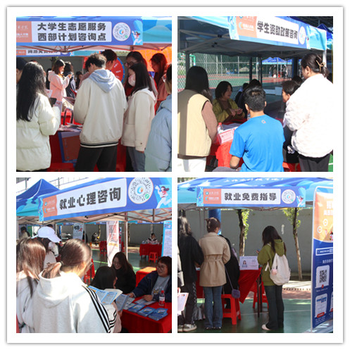 现场开设大学生志愿服务西部计划、学生资助政策、就业心理咨询、就业免费指导咨询点