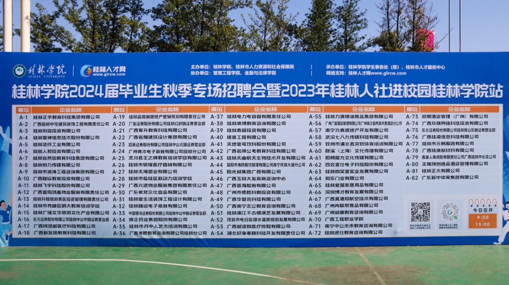 为深入贯彻习近平总书记关于高校毕业生就业工作重要指示批示精神,全面落实党中央、国务院对高校毕业生就业创业工作的决策部署,进一步深化学校与用人单位之间的交流合作,11月17日,学校举办2024届毕业生秋季专场招聘会。来自桂林市及广西区内的80余家用人单位参加本次招聘会,带来了涉及经济、金融、教育、体育、电子信息科技、设计等领域的近1000个就业岗位,同时开设大学生志愿服务西部计划、学生资助政策、就业心理咨询、就业免费指导咨询点。我校师生近3000人参加了活动。