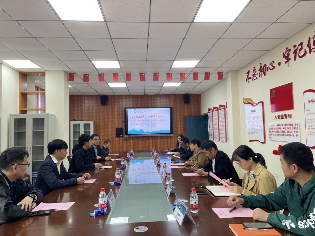 曼谷吞武里大学教育指导办公室主任黄碧泰对我校的热情接待表示感谢,他通过宣传片详细介绍了曼谷吞武里大学的概况及学科设置;他表示希望通过此次访问,与我校在硕士学历提升、留学生中文培训等方面拓宽国际合作的新领域。