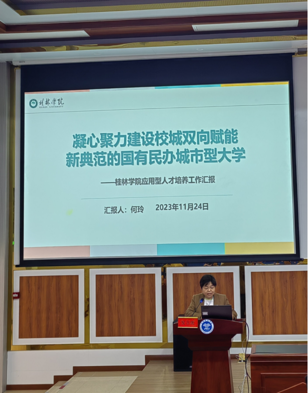 最后,开展大会论坛,我校副校长何玲在论坛上代表学校作题为《凝心聚力建设校城双向赋能新典范的国有民办城市型大学——桂林学院应用型人才培养工作汇报》的成果分享,从加强顶层设计,擘画应用型高校发展蓝图;坚持内涵发展,创新应用型人才培养;师生争先图强,应用型人才培养成效显著等三个方面进行汇报,展示了我校应用型人才培养成效。与会人员还就高质量应用型人才培养问题进行了深入交流,促进了应用型高校之间、高校与企业之间的交流与合作,为下一阶段应用型人才培养工作拓宽了视野、提供了思路,有助于我校应用型人才培养迈上新台阶,为谱写广西教育高质量发展新篇章贡献力量。