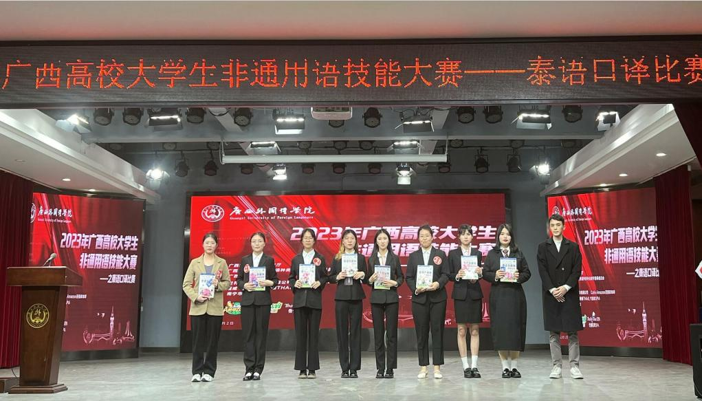 12月2—3日,2023年广西高校大学生非通用语技能大赛在广西外国语学院举行。12月2日是泰语口译比赛,全区11所高校共39名学生参加,我校泰语专业派出4名学生参加比赛。12月3日是越南语口译比赛,全区9所高校共35名学生参加,我校越南语专业派出4名学生参赛。比赛分为视译和听译(外译汉、汉译外)两个环节,分为复赛和决赛,内容涵盖两国文化、教育、旅游、贸易、外交、社会等多个领域。