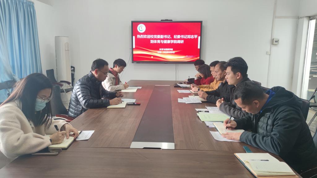 在体育与健康学院调研期间,党总支负责人详细汇报了全面从严治党及党风廉政建设、清廉学校建设、师德师风建设、重点工作等开展情况。邓志平肯定了体育与健康学院工作取得的成效,针对师德师风建设、清廉学校建设、专业建设、学生管理等问题与学院领导班子进行了交流。邓志平指出,体育与健康学院要坚定不移加强党对教育工作的全面领导,自觉加强党风廉政建设,推进清廉学校建设走深走实;要着眼于工作规范化,抓管理、抓落实,扎实推进各项工作有序开展,促进各项工作有机融合,推进学院工作持续健康发展。