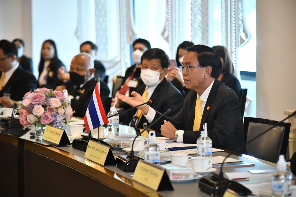 访问泰国上议院教育委员会期间,上议院教育委员会主席端·安塔猜、第一副主席巴里查·波威拉叻、资深顾问邬·波昂奔上将、各大教育机构代表以及十余所职业教育院校校长在新国会大厦上议院二楼202特别接待室共同接待杨树喆一行。双方围绕中泰两国高校教育合作、泰国各教育机构开设国际化课程、外国留学生奖助学金和泰国赴华留学生奖助学金、与私营机构开展合作以促进毕业生就业等内容展开充分讨论。