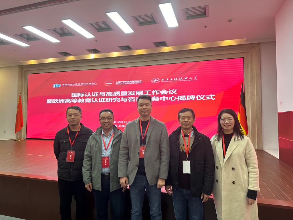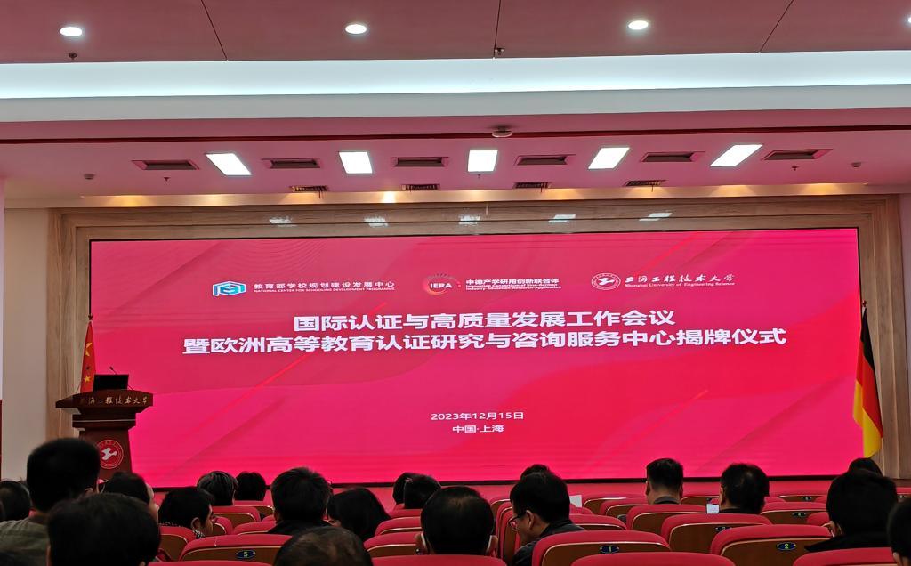 12月15日,国际认证与高质量发展工作会议暨欧洲高等教育认证研究与咨询服务中心揭牌仪式在上海召开。本次会议由教育部学校规划建设发展中心主办,上海工程技术大学、中德产学研用创新联合体承办。中德应用科技大学国际合作联盟主席、上海工程技术大学校长俞涛,ASIIN高等教育认证委员会副主席、慕尼黑应用科技大学副校长Pro.Dr.Klaus Kreulich等出席开幕式并致辞,上海工程技术大学、同济大学、安徽大学等近60所高校的校领导和职能部门负责人等出席会议。我校副校长蒋毅,发展与质量评估处、理工学院、城市设计学院、金融与法律学院相关负责人参加会议。
