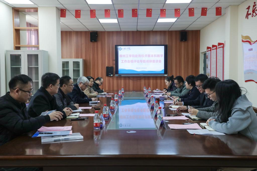 12月29日上午,柳州工学院校长顾问牟海维一行莅临我校调研考察,围绕我校本科教学工作合格评估进行专题调研。柳州工学院副校长梁开庆、教务处、图书与信息网络中心、学生工作部、招生就业处招生科相关负责人,我校副校长杨庆庆、发展与质量评估处、教务与产教融合处、图文信息中心、校团委、人力资源处(部)相关负责人参加座谈会。杨庆庆主持会议。