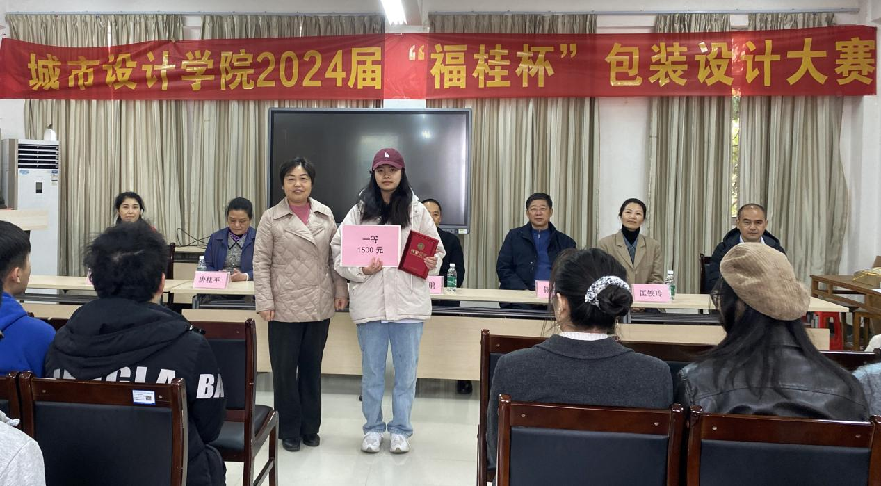 1月4日下午,由学校城市设计学院与桂林福桂纸业有限公司共同举办的第9届“福桂杯”纸业包装设计大赛颁奖仪式在嘉善楼213会议室举行。学校副校长何玲,桂林雁山区委统战部长蒋继鹃,雁山区工商联党支部书记匡铁玲、雁山区工商联主席孙莹,桂林福桂纸业有限公司董事长银福忠等出席颁奖仪式。城市设计学院相关负责人以及师生代表参加活动,仪式由城市设计学院负责人主持。