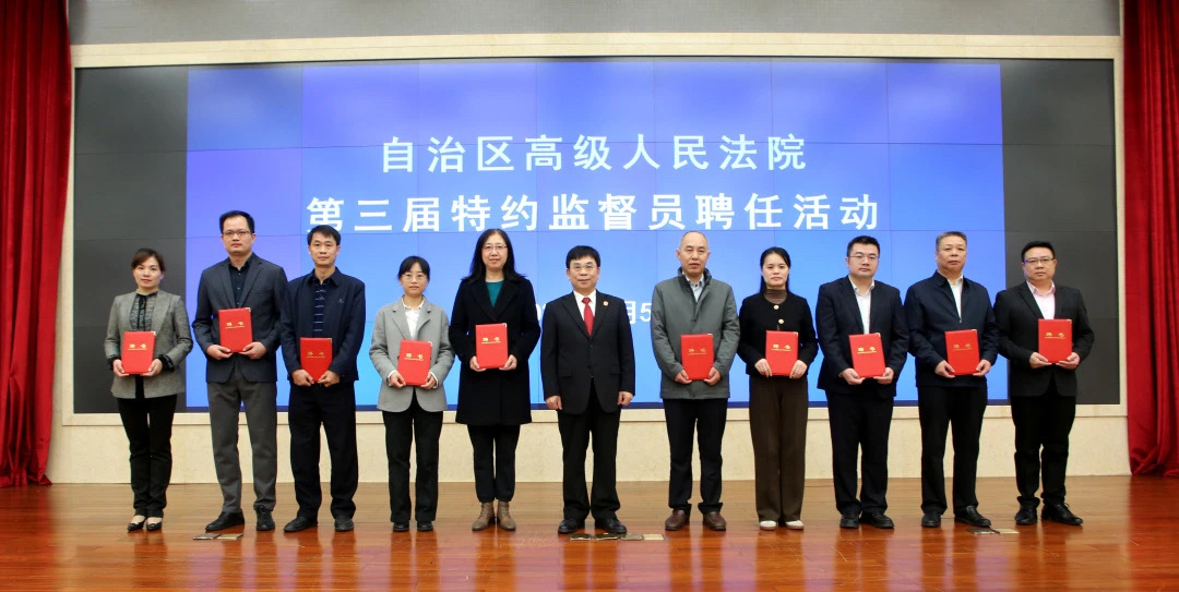 特约监督员制度是促进司法为民、公正司法的重要举措,是人民法院主动接受监督,广泛凝聚智慧和力量的重要载体,对审判执行工作中践行全过程人民民主具有重大意义。本届自治区高级人民法院共聘任50名特约监督员,由人大代表、政协委员、民主党派及其他社会各界等代表组成,涵盖法律、教育、医卫、科研、经济、宣传等多个领域。