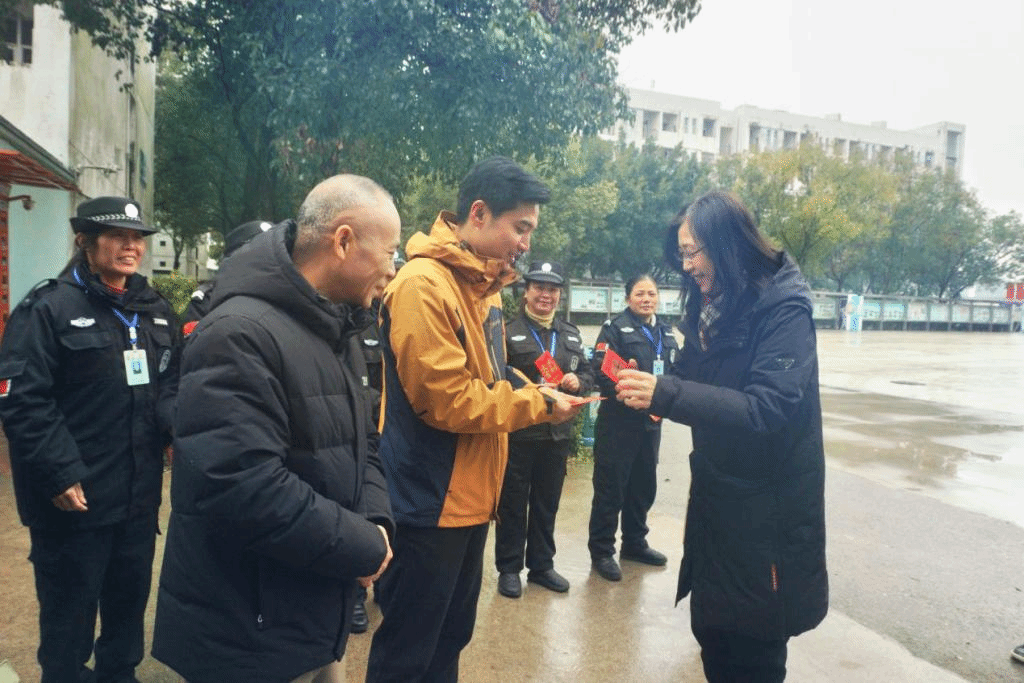 2月8日上午,校党委书记、督导专员唐文红,副校长、校工会主席杨庆庆一同看望慰问节日期间坚守岗位的一线教职员工。唐文红一行先后来到学校东门、警务室、保洁区、知善楼警务室、寒假值班室,亲切慰问了寒假期间依然坚守岗位认真履职的教职员工,致以诚挚的问候,对值守教职员工的爱岗敬业和无私奉献精神给予了高度赞扬,感谢他们为确保假期学校安全稳定的辛苦付出,并代表学校董事会、党委、行政送上了新春祝福和慰问品。每到一处,唐文红都详细询问寒假期间的各项工作保障和应急值守情况,关切地了解值守教职工的假期生活,叮嘱大家保重身体。同时要求大家继续扎实落实维护学校安全稳定的各项措施,坚守岗位,实干担当,保证寒假、春节期间学校工作的有序运行。学校办公室、党委工作部、校工会、后勤保卫处有关负责同志陪同慰问。