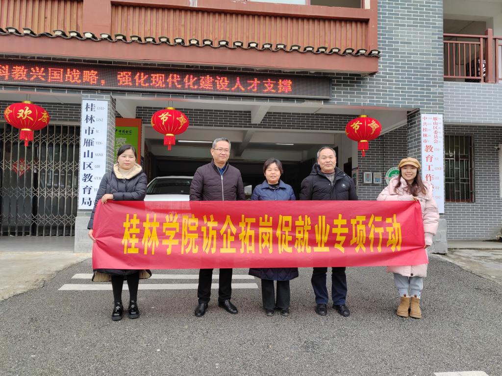 为切实履行好学校服务地方职责,做好人才留桂工作,2月26、27日,桂林市政协委员、学校副校长何玲率队先后赴桂林市教育局、雁山区政协、雁山区教育局开展“访企拓岗促就业”活动,人文学院相关负责人及骨干教师代表陪同参加活动。