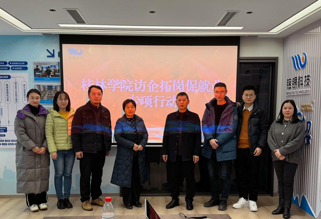 为进一步拓宽毕业生就业渠道,加强学校与企业的紧密联系,2月27日下午,副校长何玲率队赴广西铭银信息科技有限公司开展“访企拓岗促就业”活动。城市设计学院、人文学院相关负责人及部分教研室主任参加活动。广西铭银信息科技有限公司负责人龚林热情接待了何玲一行。