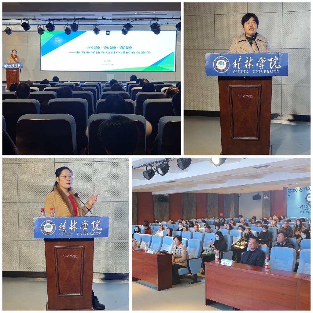为帮助我校教师更好地理解教学改革的重要性,掌握教改项目的申报和建设技巧,提升教师的教学水平和研究能力。3月13日上午,学校特邀广西师范大学梁燕玲教授为全校教师开展了一场题为“问题·选题·课题——教育教学改革项目申报的有效路径”的高水平教学讲座。副校长何玲主持讲座,学校100余名教师参加了本次讲座。