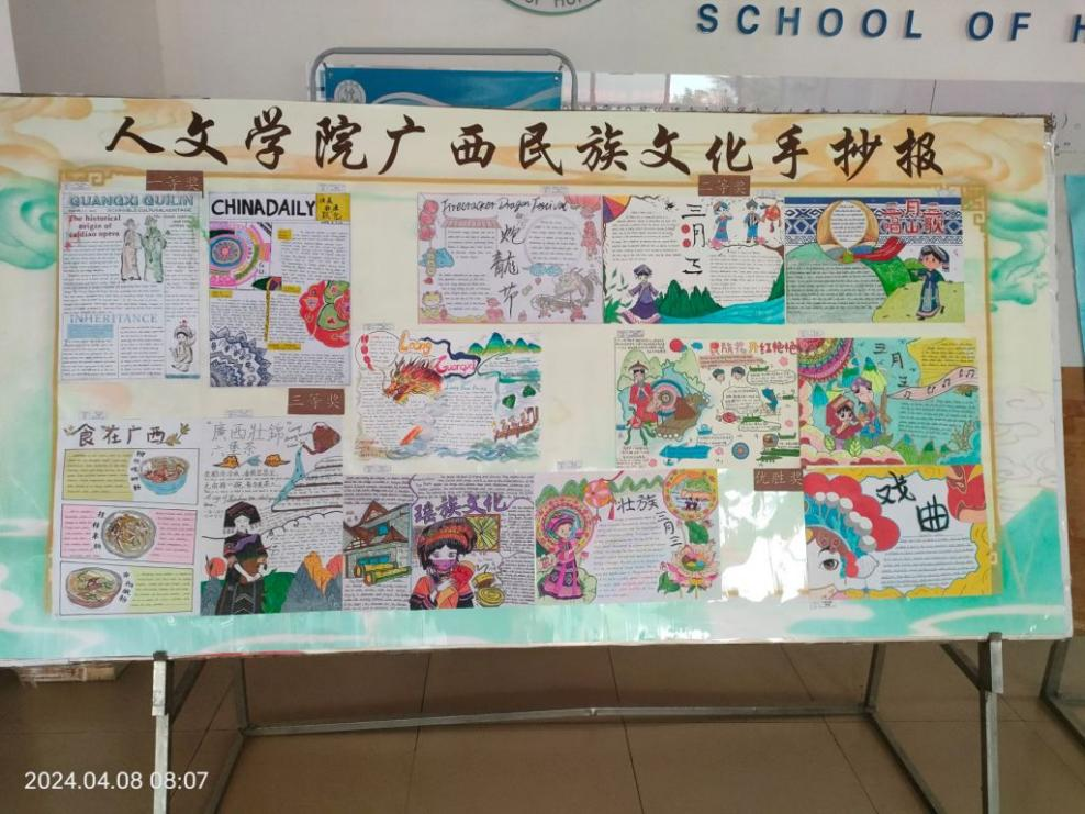 人文学院┃思想引领,筑牢理想信念。学院充分发挥思想政治教育主渠道作用,通过主题教育、校园活动、团课班会等形式,开展了“潮起三月三、奋进新征程——铸牢中华民族共同体意识”主题研学、“广西民族文化”英语手抄报大赛与实习动员大会等活动。培养了学生的家国情怀、国际视野、专业应用能力,同时进一步引导学生树立正确的实习观、择业观,帮助他们建立人生理想,建立努力方向。