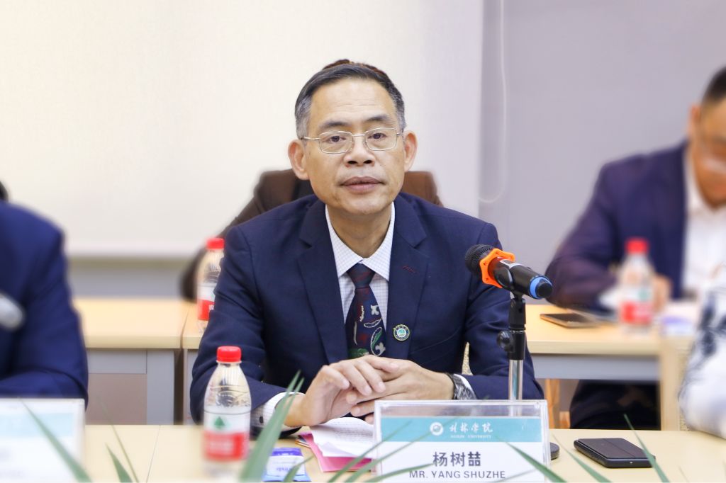 杨树喆在致辞中,对彬嘉玛·塔维她雅浓一行的到访表示欢迎,对泰王国驻南宁总领事馆长期以来关心支持桂林学院办学发展表示感谢,并向总领事女士介绍了学校基本情况、国际交流与合作开展情况,特别介绍了我校与泰王国高校及教育机构的交流合作情况。他表示,桂林学院与泰王国多所(个)高校及教育机构已有非常成功的合作,期待通过泰王国驻南宁总领事馆的平台,进一步拓展与泰王国高校及教育机构合作交流渠道,推动谱写中泰教育文化交流合作新的篇章。