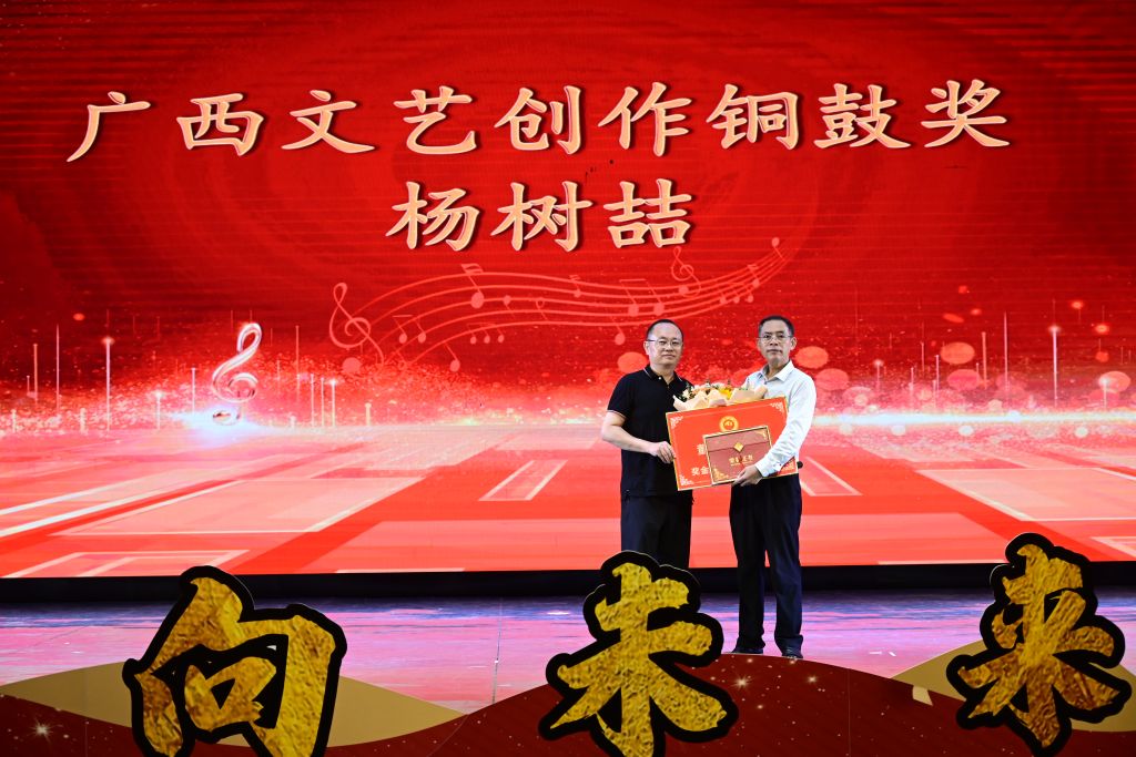 诸葛长为广西文艺创作铜鼓奖获得者杨树喆颁发“董事会特别奖”