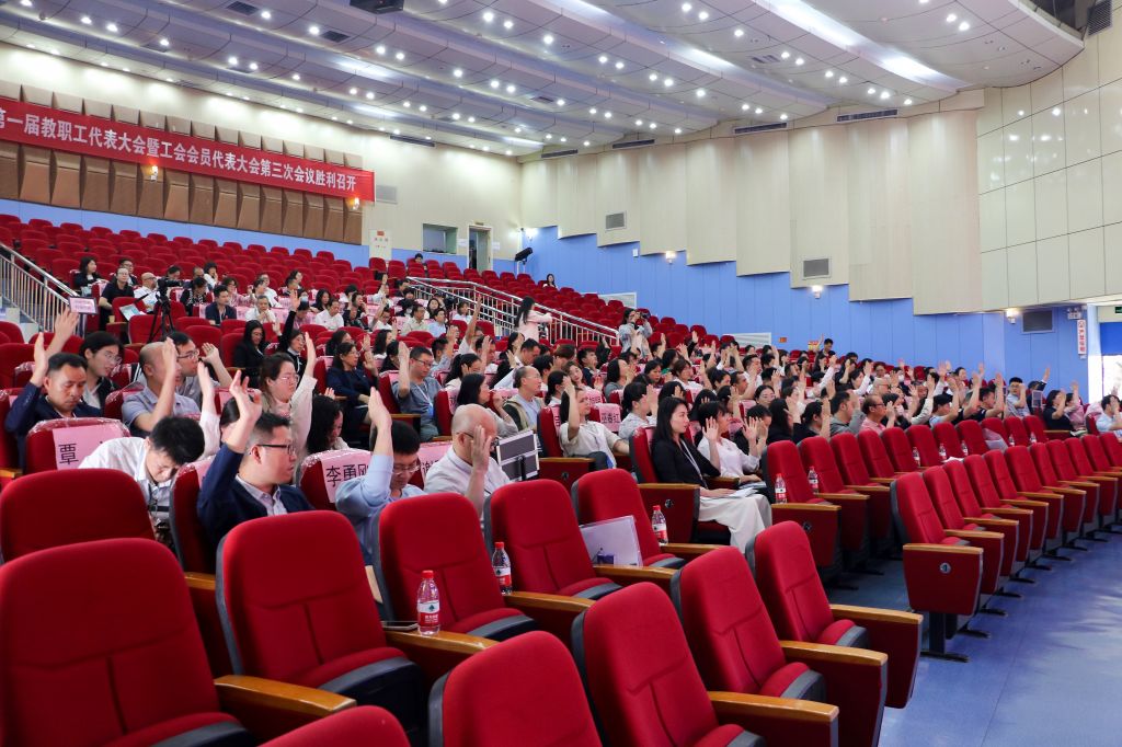 大会圆满完成各项既定议程后,在全场奏唱《造就人才的殿堂》校歌声中胜利闭幕!