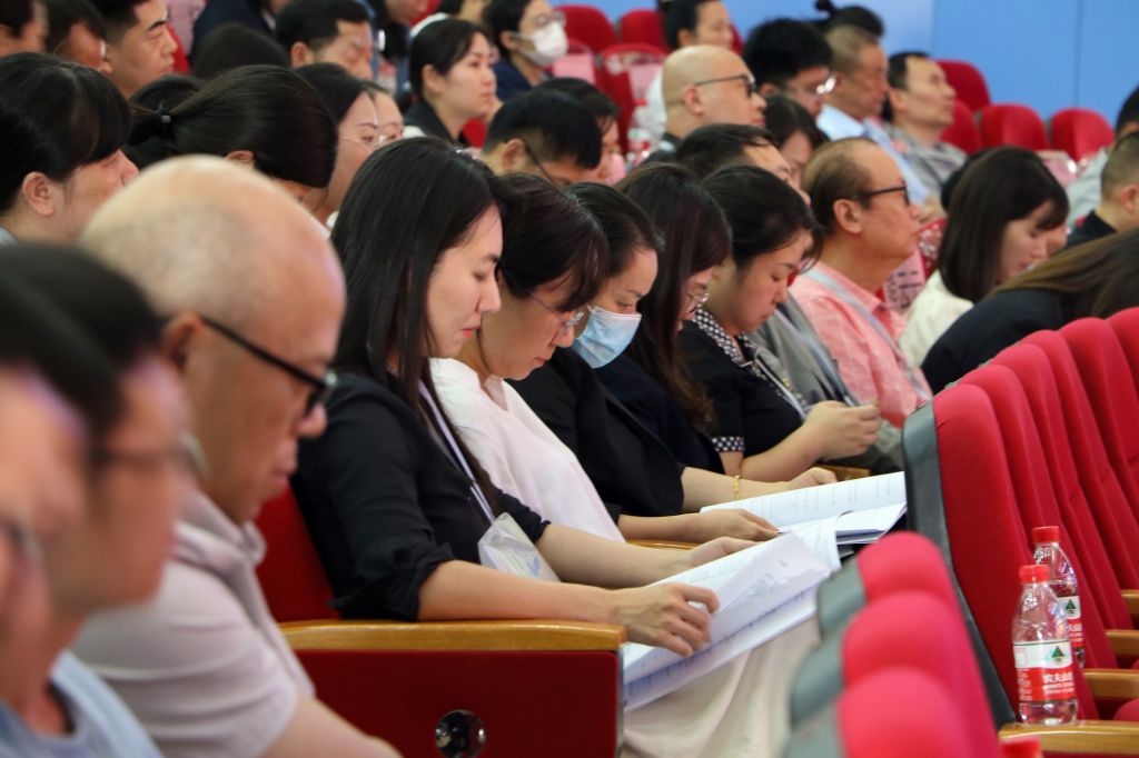 代表们认真听取校长工作报告