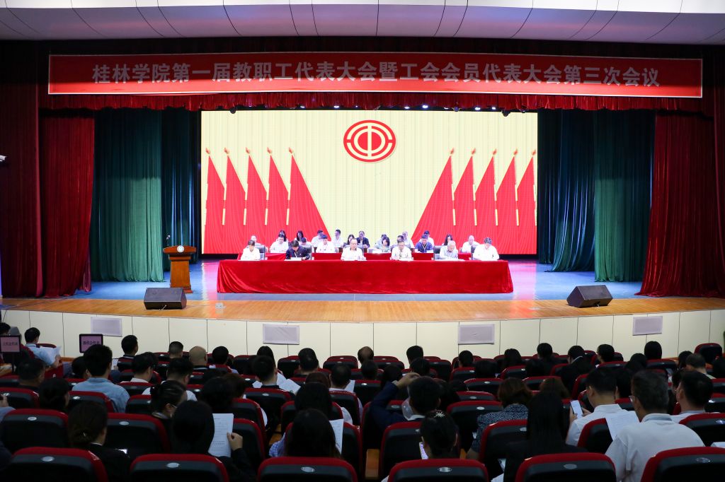 5月8日上午,桂林学院第一届教职工暨工会会员代表大会第三次会议在弘善讲堂隆重召开。学校法定代表人、桂林城建集团党委副书记诸葛长,校领导杨树喆、刘文革、杨庆庆、何玲、蒋毅出席会议。正式代表、特邀代表、列席代表共180余人参加会议。