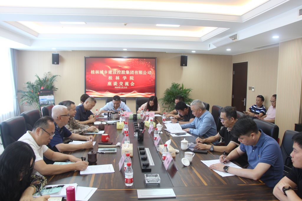 张健对杨树喆一行的到来表示热烈欢迎。他表示,桂林城建集团于2022年9月以桂林市经济建设投资集团有限公司为主体重组而成,是桂林市六大国有企业集团公司之一。重组后,集团公司紧紧围绕市委、市政府有关决策部署和实施市属国有企业战略性重组工作中的“大城建”目标,聚焦资源,打造水务公用事业、市政物业、城市投资建设等主业,发展城市运营等具备自主造血能力的增量产业,提升桂林市国资融资能力,服务重点项目建设,着力化解政府隐性存量债务。集团公司的宗旨是“忠诚、担当、开放、有为”。集团公司拥有12家旗下子公司,经营范围包括:经济建设投资,基础设施建设,引进建设资金,经济技术合作,投资项目论证,咨询服务,停车服务;餐饮服务;自来水生产与供应、排水及污水处理;城市路桥建设、管护,市政物业、加油站、土地整治服务、房地产开发、酒店管理、会议及展览服务、教育培训、粮食仓储销售等政府特许经营项目;建筑施工;乡村振兴相关业务,打造农产品加工、冷链物流、交易综合服务平台;城市环卫清洁、垃圾消纳等。希望双方进一步深化产教融合、校企合作,努力在人才培养培训、学生实习就业、促进企业发展等领域形成更多具有标志性的成果,实现互惠双赢、共同发展。