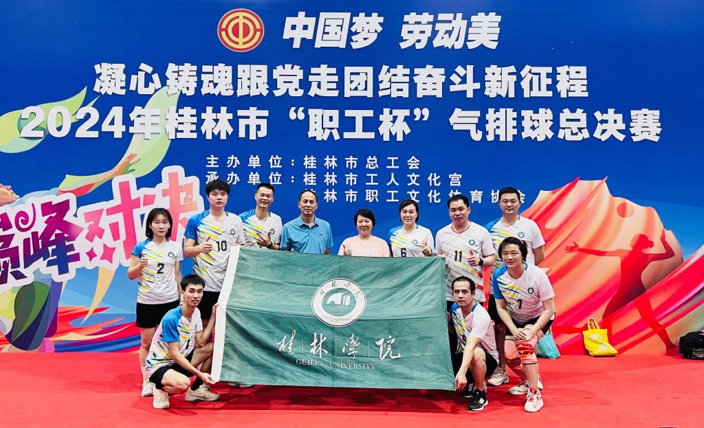 5月25日—6月1日,由桂林市总工会主办,桂林市工人文化宫、桂林市职工文化体育协会承办的2024年“职工杯”气排球总决赛在桂林市七星区国际会展中心综合球馆进行。来自全市各职工系统34支代表队408名运动员、教练员参赛。经过三天的激烈角逐,我校教职工代表队荣获第四名,为在该项赛事历届比赛中取得的最好名次。