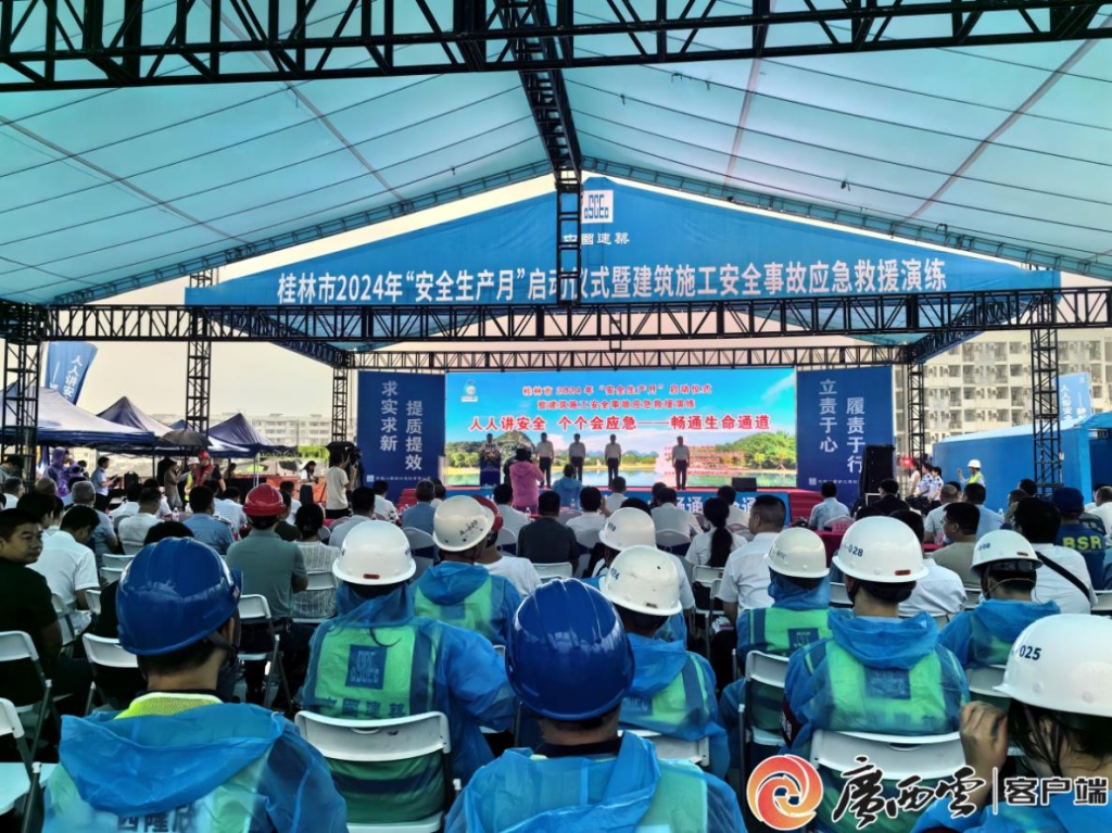 启动仪式上发布了桂林市2024年“安全生产月”主题宣传片。今年的“安全生产月”活动以“人人讲安全、个个会应急——畅通生命通道”为主题。主题宣传片指出,安全生产事关人民福祉、经济社会发展大局。各级各部门要始终坚持“人民至上、生命至上”,时刻紧绷安全生产这根弦,把统筹发展和安全落实到各领域各环节,以更加有力的措施解决安全生产领域突出问题,全面提升安全监管水平,有效防范生产安全事故。要以“安全生产月”活动为契机,扎实开展安全生产治本攻坚三年行动和燃气、电动自行车专项整治等活动,全面落实安全生产责任,紧盯重点领域不脱节,紧扣重点环节不懈怠,紧抓重点人员不放松,狠抓安全生产各项工作落实,不断提升全社会安全意识和应急处置能力,形成“人人讲安全、个个会应急”的浓厚氛围,为助力桂林市打造世界级旅游城市营造良好的安全生产环境。