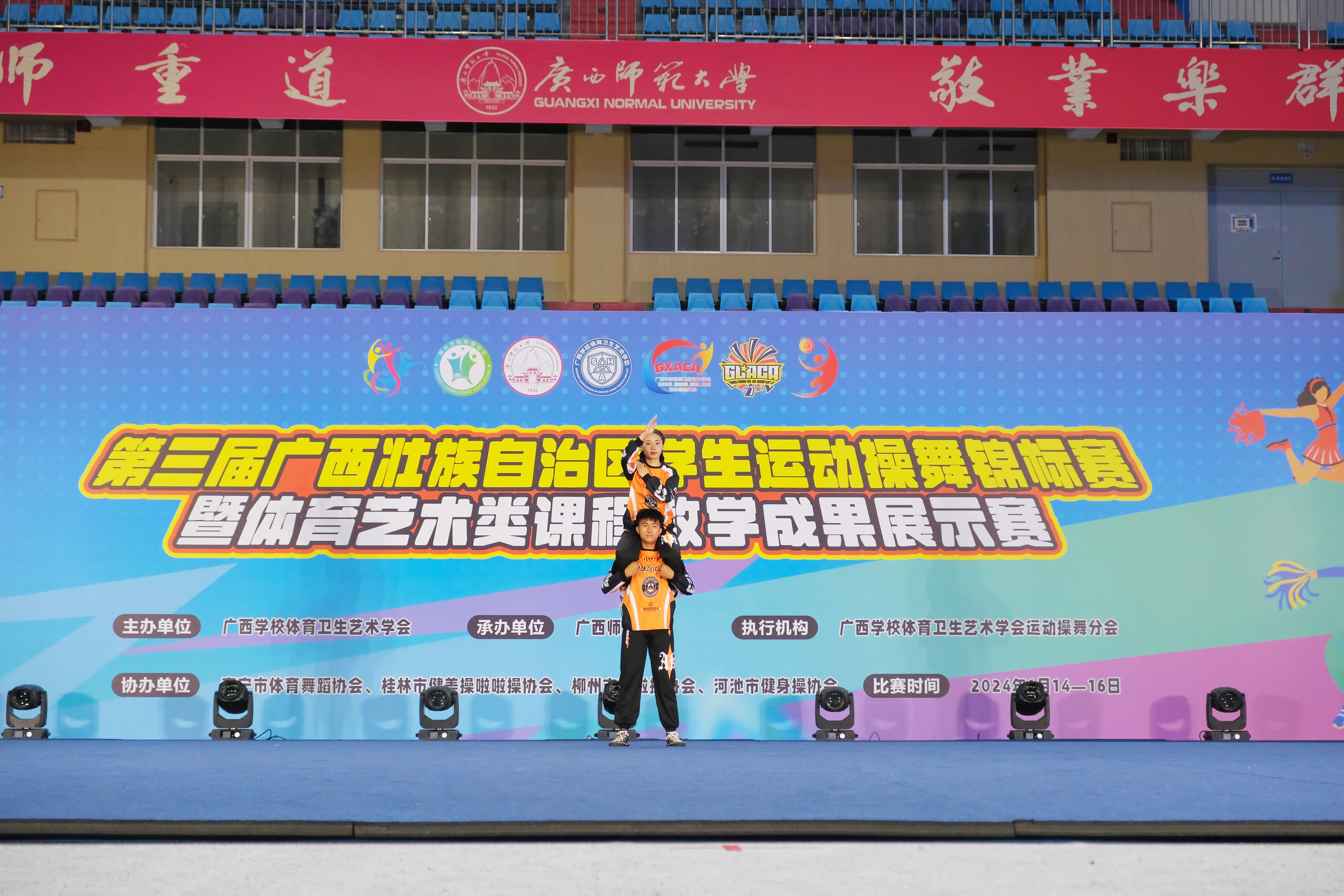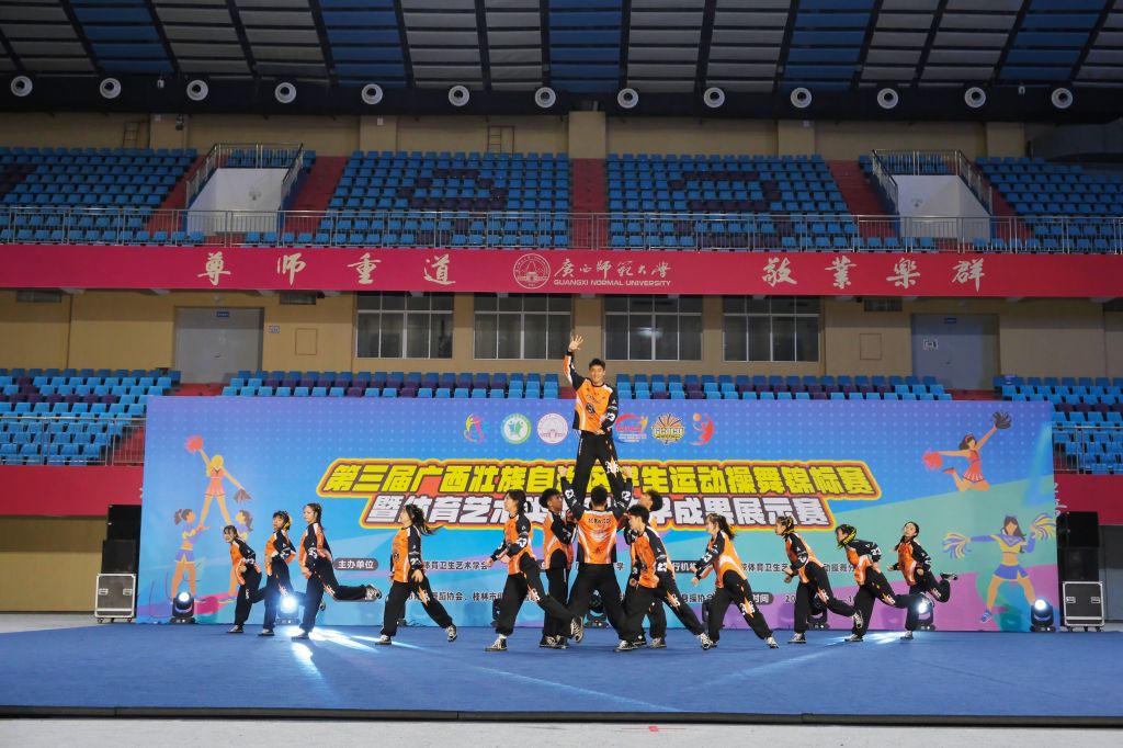6月14日—16日,由广西学校体育卫生艺术学会主办,南宁市体育舞蹈协会、桂林市健美操啦啦操协会、柳州市啦啦操协会、河池市健身操协会协办的第三届广西壮族自治区学生运动会操舞锦标赛暨体育艺术类课程教学成果展示赛于广西师范大学落下帷幕。本次比赛共有1600余名运动员参赛,历经三个比赛日,展开了啦啦操、健美操、街舞、排舞、民族民间舞、体育舞蹈、广播体操共七个竞赛类别25个竞赛项目的激烈争夺。
