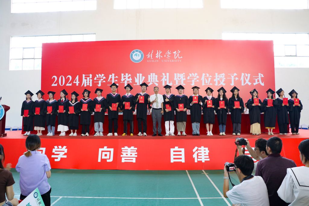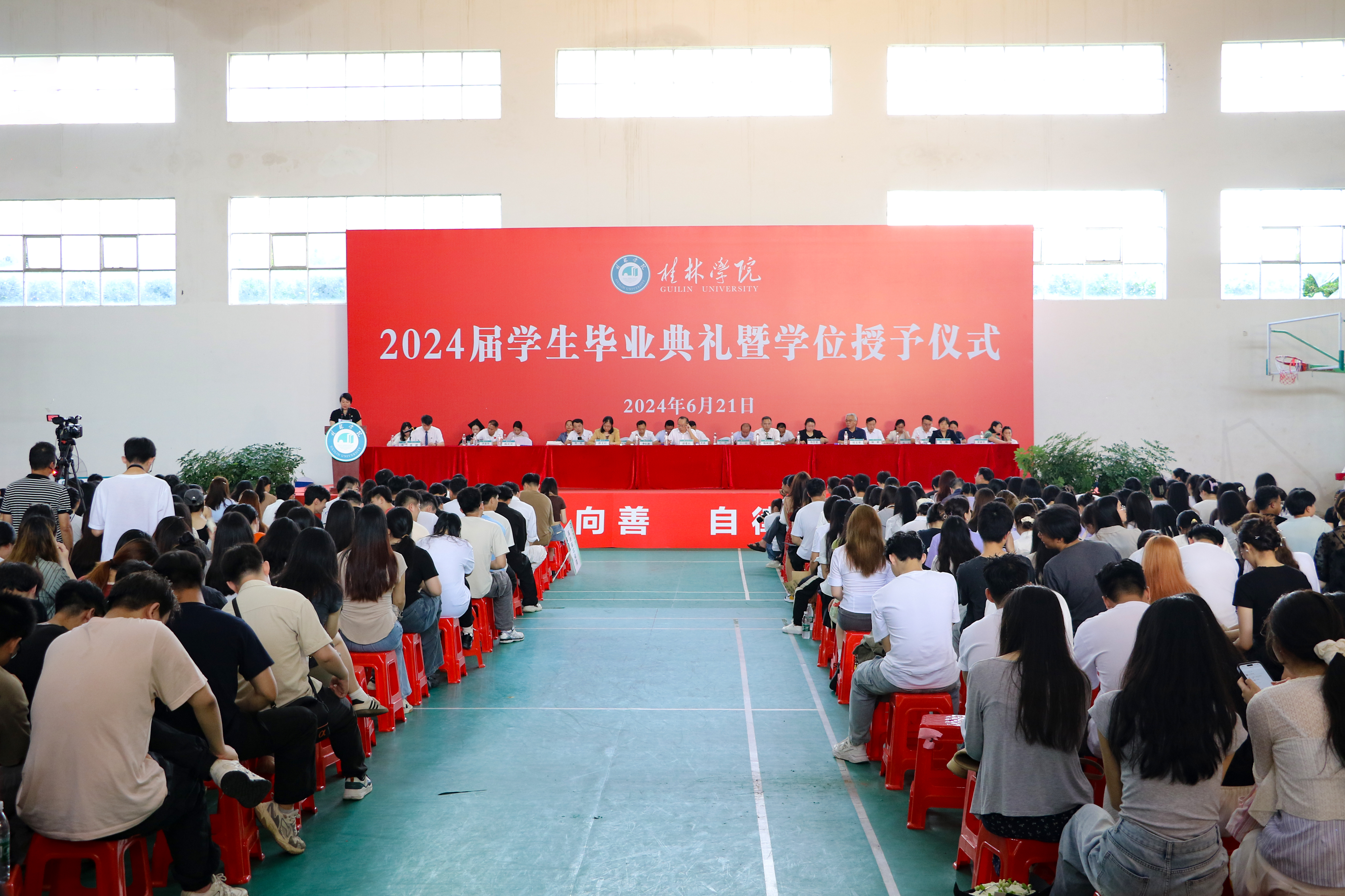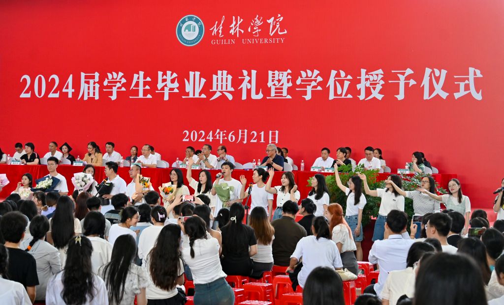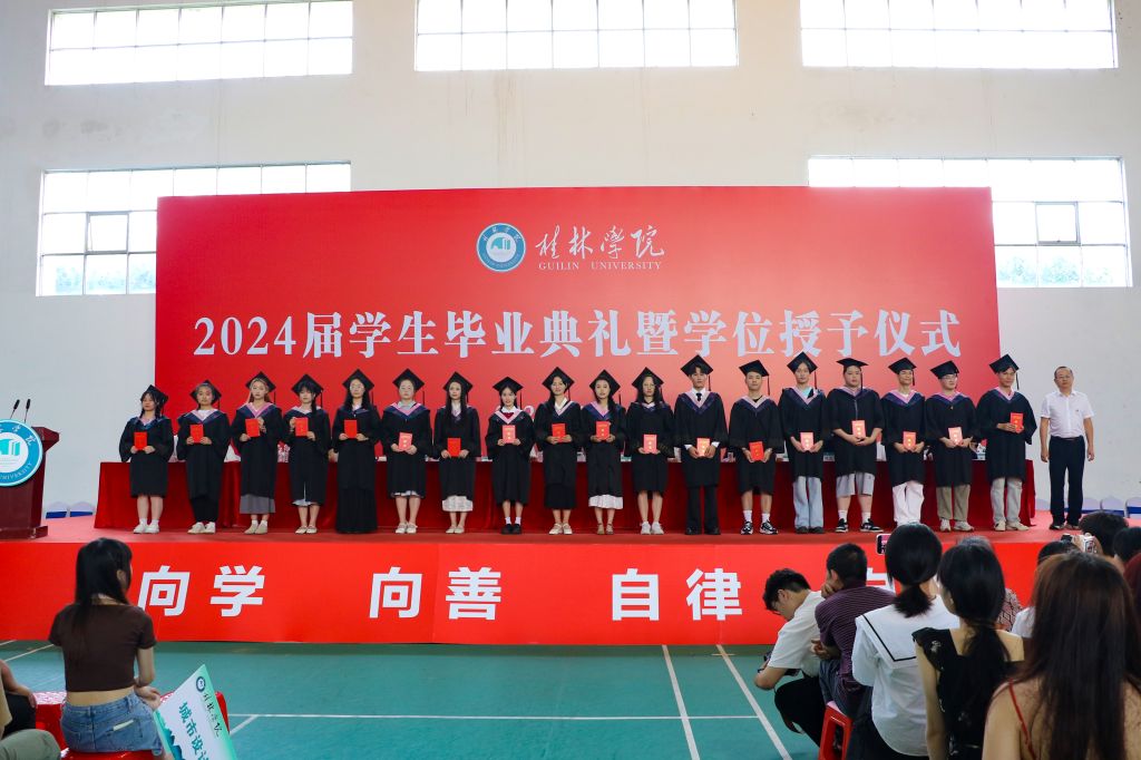 6月21日上午,桂林学院2024届毕业生毕业典礼暨学位授予仪式在彰善楼球类馆隆重举行。典礼现场实况通过学校官方微信视频号平台进行了同步直播。
