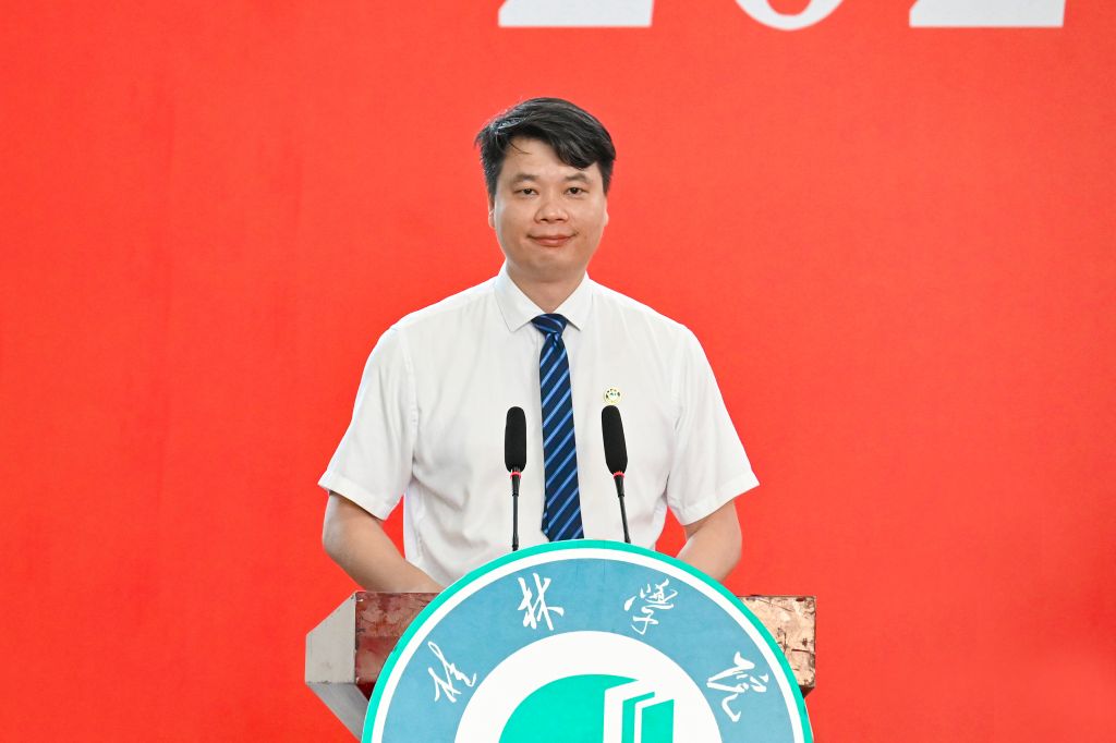 杨树喆深情回顾了毕业生同学们在至善园弥足珍贵的大学时光。他表示,2024届毕业生同学们经受了新冠疫情的考验,展现出了新时代大学生的责任和担当,是祖国发展进步的亲历者和见证者,也是学校办学发展的参与者和建设者。在中国式现代化迈向新征程的四年间,全校师生隆重庆祝建党100周年,庆祝中国全面建成小康社会;见证了党的二十大胜利召开,中华民族伟大复兴的宏伟蓝图展开了新的画卷。四年来,同学们与学校同奋进、共担当,共同见证了广西师范大学漓江学院成功转设并更名为桂林学院,全面开启了建设“规范高效、特色鲜明、质量与就业‘双优’的高水平应用型大学”的新征程。
