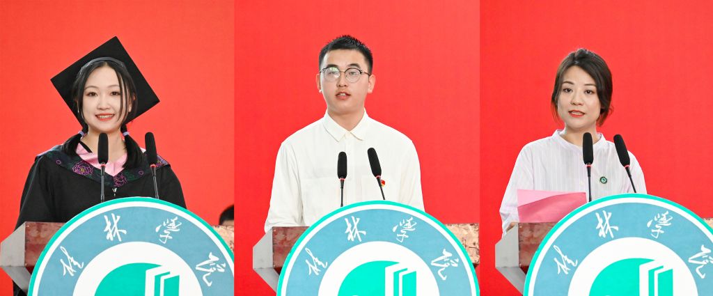 毕业生、在校生、教师代表在典礼上发言