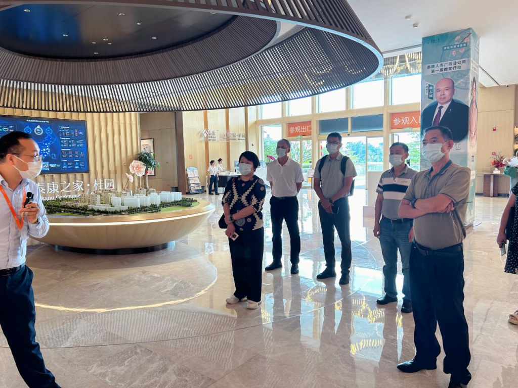 南宁泰康之家·桂园康复医院有限公司业务涵盖广泛,主要包括养老服务、病人陪护服务、康复辅具适配服务、酒店管理、健康咨询服务、中医养生保健服务等内容。在活动过程中,杨树喆一行先后参观了泰康之家·桂园展示大厅、康养客房、康复医院等场所。