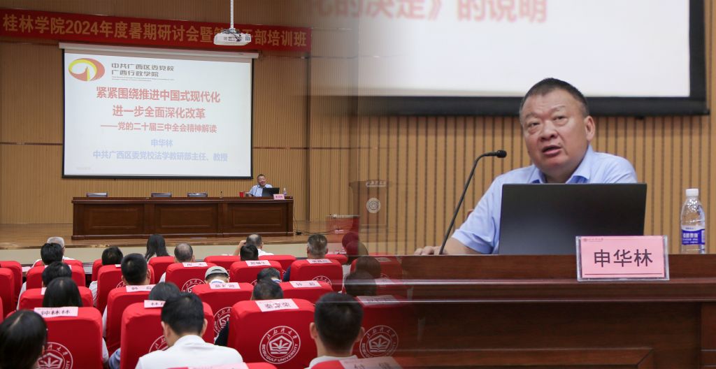 专题学习会上,申华林以《紧紧围绕推进中国式现代化进一步全面深化改革——党的二十届三中全会精神解读》为题,从“为什么改”“向哪里改”“怎么改”“广西怎么做”等四个方面对中心组学习进行专题辅导。辅导报告以生动的事例、通俗易懂的语言对党的二十届三中全会的新概念、新观点、新论断作了细致分析和详细解读,脉络清晰、生动形象、重点突出、切合实际,对与会人员准确理解和全面把握党的二十届三中全会精神具有重要的指导意义。