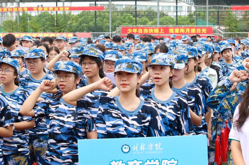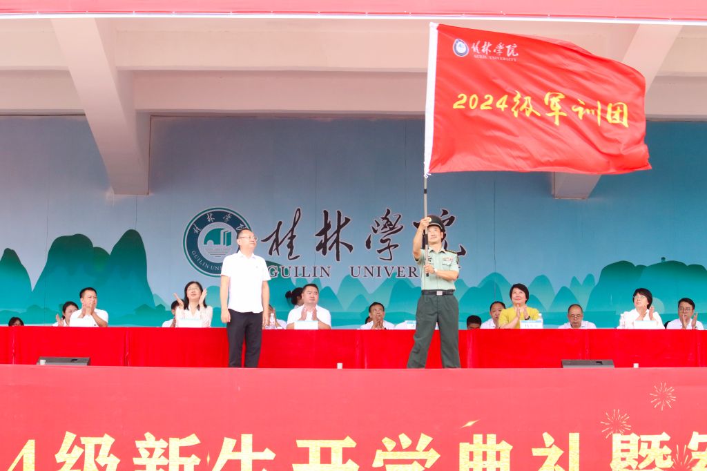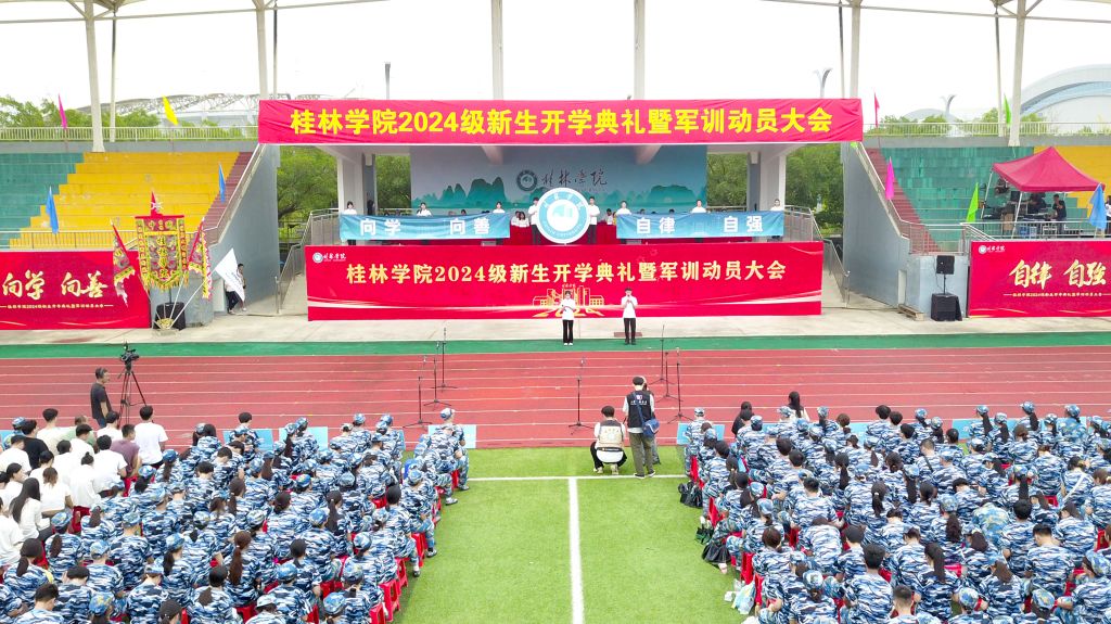 序转秋实,新秀来兮。9月9日上午,学校2024级新生开学典礼暨军训动员大会在田径场隆重举行。3000余名新生齐聚于此,佩戴上桂林学院徽章,接力传承学校“向学、向善,自律、自强”的校训精神,满怀桂院学子的青春热忱与憧憬希望,共同开启人生逐梦的崭新航程。