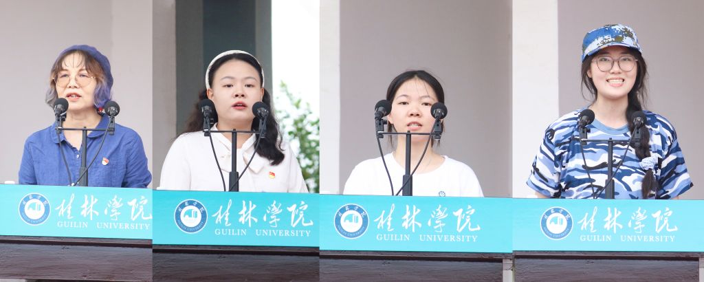 教师代表黄芳(第十三届全国少数民族文学创作诗歌类骏马奖广西唯一获奖者)、校友代表蒋倩(理工学院2020届数学与应用数学专业毕业生)、高年级学生代表张宇洁(管理工程学院2021级会计学专业学生)、新生代表黄佳(传媒与新闻学院2024级播音与主持艺术专业学生)分别在开学典礼上发言。