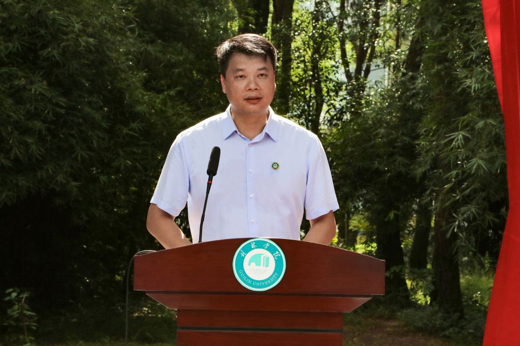 春种秋收,叠翠流金。9月10日,在第40个教师节来临之际,学校隆重举行“党旗领航·铸魂育人”党建文化展示区之《桂林学院赋》文化展示区揭牌仪式。桂林市城乡建设集团控股有限公司党委书记、董事长、校董事会董事长陶毅,学校终身教授张葆全,校领导唐文红、杨庆庆、黄润松、康庚莲、刘文革、何玲、蒋毅,各二级学院、各单位主要负责人及师生代表出席仪式。仪式由副校长蒋毅主持。