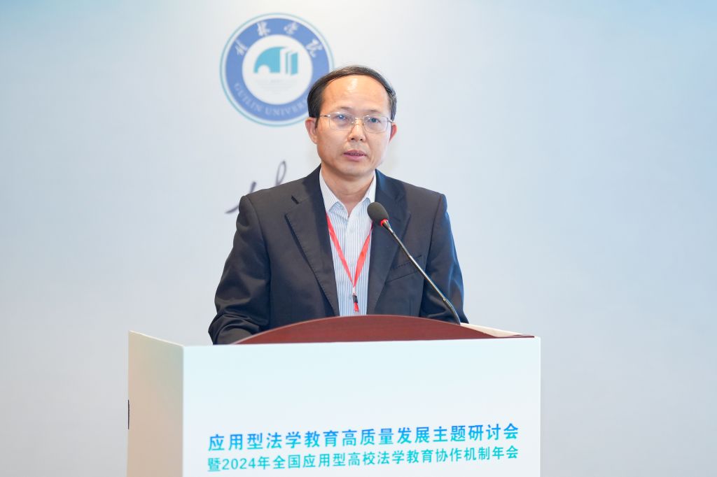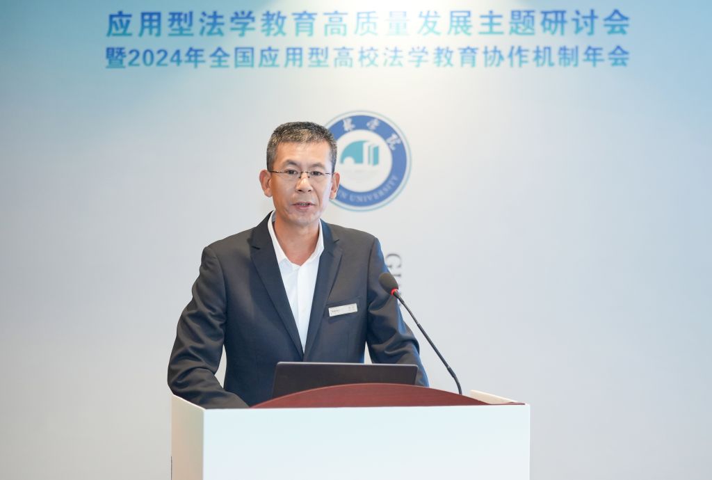 广西法学教育研究会会长、广西师范大学图书馆馆长、博士生导师陈宗波致辞,我国应用型法学教育的发展已进入更加注重内涵式发展的新阶段,只有融入新发展格局,构建有效的实践路径,才能实现法学教育的高质量发展,培养更多更好符合法治现代化社会发展要求的新质人才。