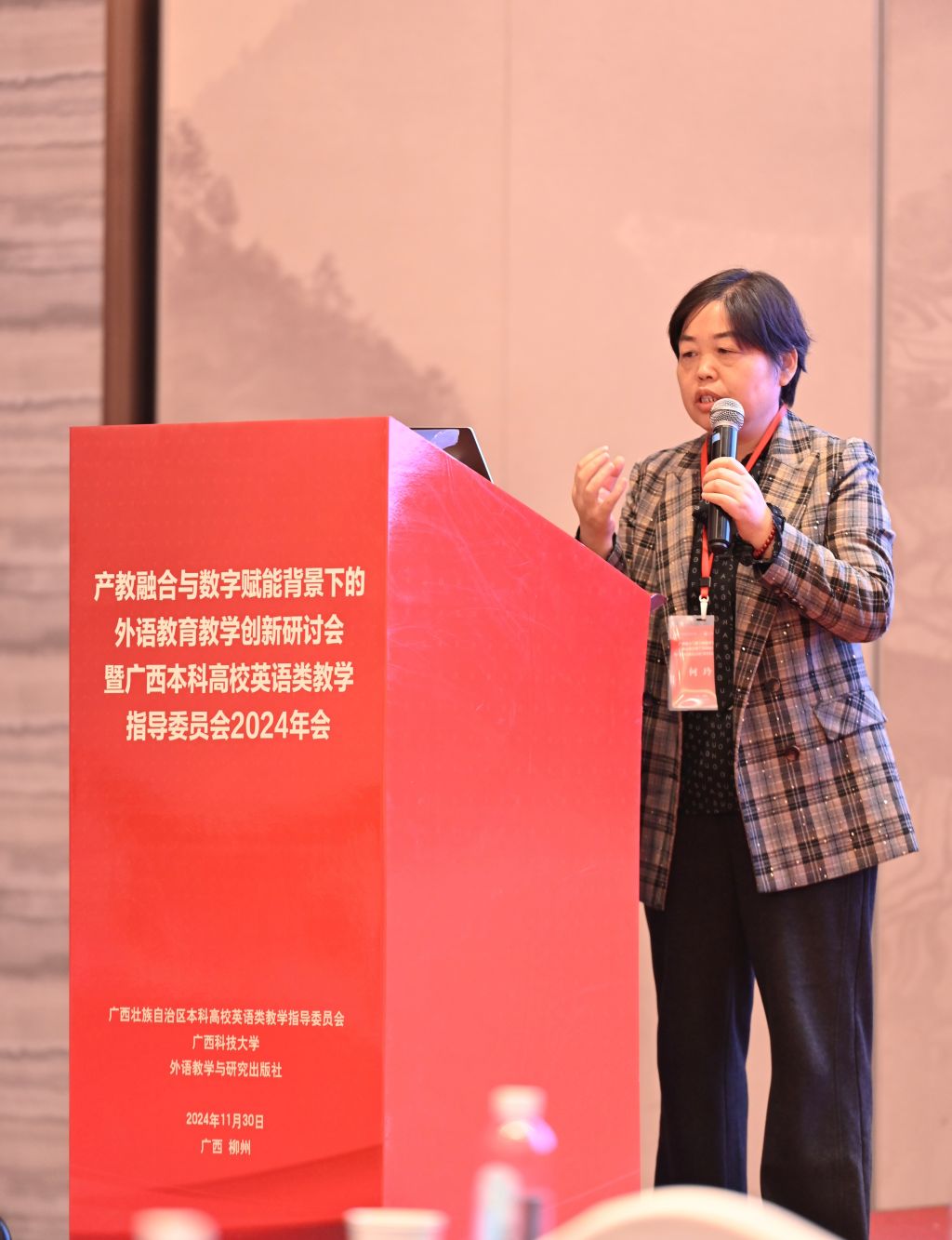 11月30日,由广西壮族自治区本科高校英语类教学指导委员会主办,广西科技大学和外研社共同承办的“产教融合与数字赋能背景下的外语教育教学创新研讨会暨广西本科高校英语类教学指导委员会2024年会”在柳州召开。来自全区高校英语类教学指导委员会委员,各高校外国语学院负责人,教研室主任及骨干教师参加会议,我校副校长何玲教授受邀出席,人文学院教研室主任一同参会。